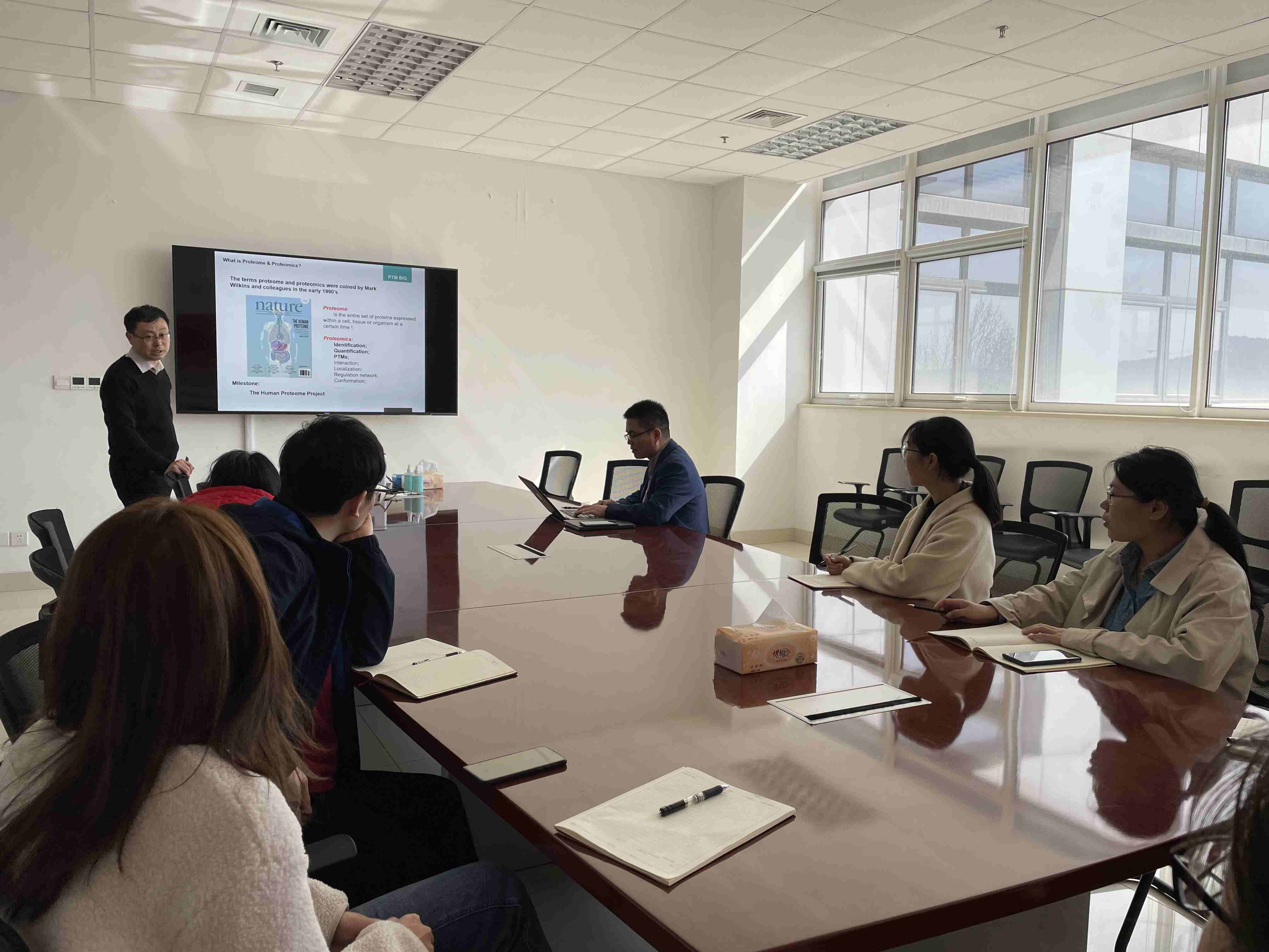 夏雪奎介绍了微生物药物研究室主要研究领域。景杰生物华北大区经理王炳楠做了“基于整合蛋白组及翻译后修饰在生命科学研究进展”的报告。双方在蛋白质组学研究在天然产物挖掘过程中发挥的作用进行了深入的交流。通过交流洽谈,双方在整合资源优势和加强课题共研等方面达成合作意向,将高通量蛋白质组学及翻译后修饰蛋白质组学研究方法应用于天然产物的合成机制研究,促进活性天然产物的生物合成。