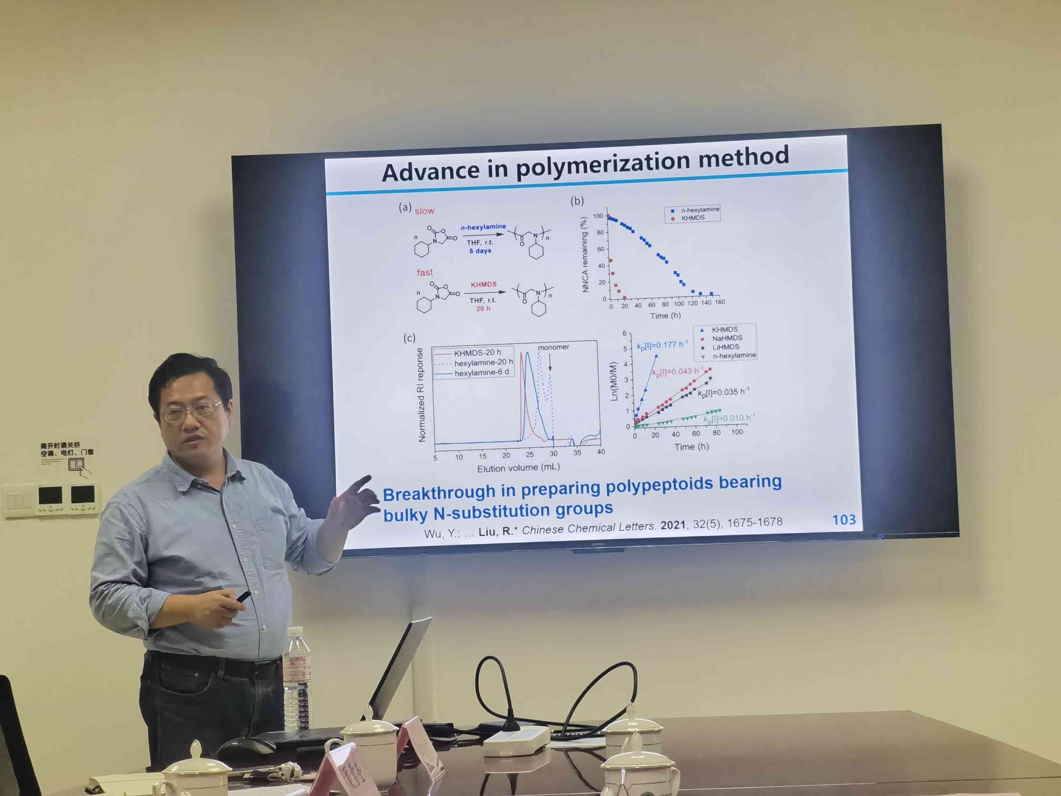 刘润辉作了题为“Peptide-Mimicking Polymers as the Next Generation Bioactive Materials”的报告,分享了近十年来通过模拟天然多肽或蛋白合成氨基酸聚合物,进行抗菌抗非特异性蛋白吸附材料、蛋白类及小分子药物的体内传输和可控释材料等的研究成果和科研历程。随后,又详细介绍了“基于双靶点抗耐药真菌研究进展”,该项目被国家基金委作为重要基金资助成果报道,其科研成果《一种双靶点抗真菌活性分子有效对抗多重耐药的人类真菌病原体》于2024年4月8日发表在《自然•微生物》(Nature Microbiology)杂志上。