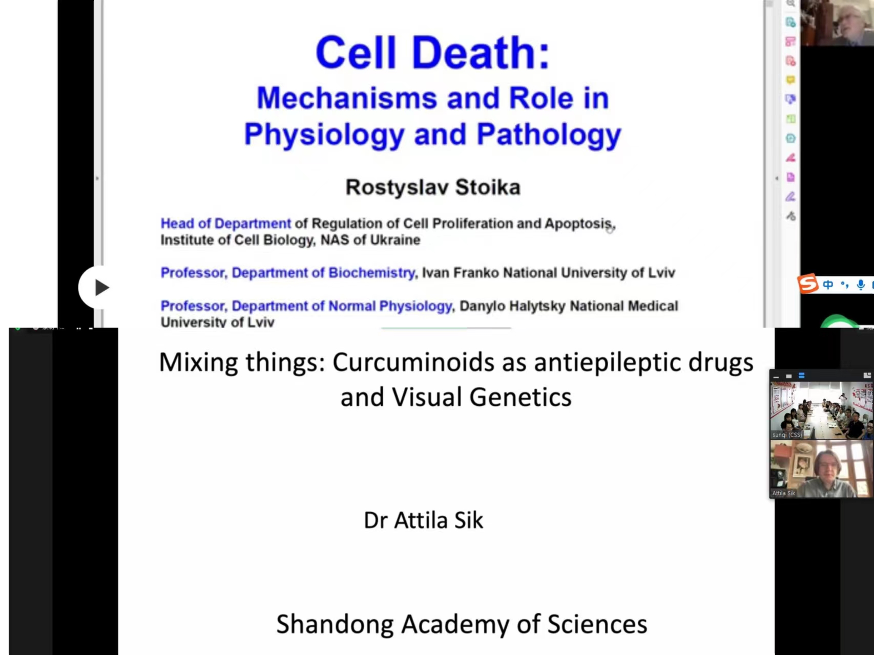 2022年9月13日、15日,生物所邀请乌克兰国家科学院院士Rostyslav stoyka、匈牙利佩奇大学教授Attila Gabor SIK,分别进行了《Cell Death in Physiology and Pathology》《Mixing things: Curcuminoids as antiepileptic drugs and Visual Genetics》线上专题讲座,生物所名誉所长刘可春、药物筛选研究室主任靳梦、副主任夏青及科研骨干与研究生23人参加了讲座。