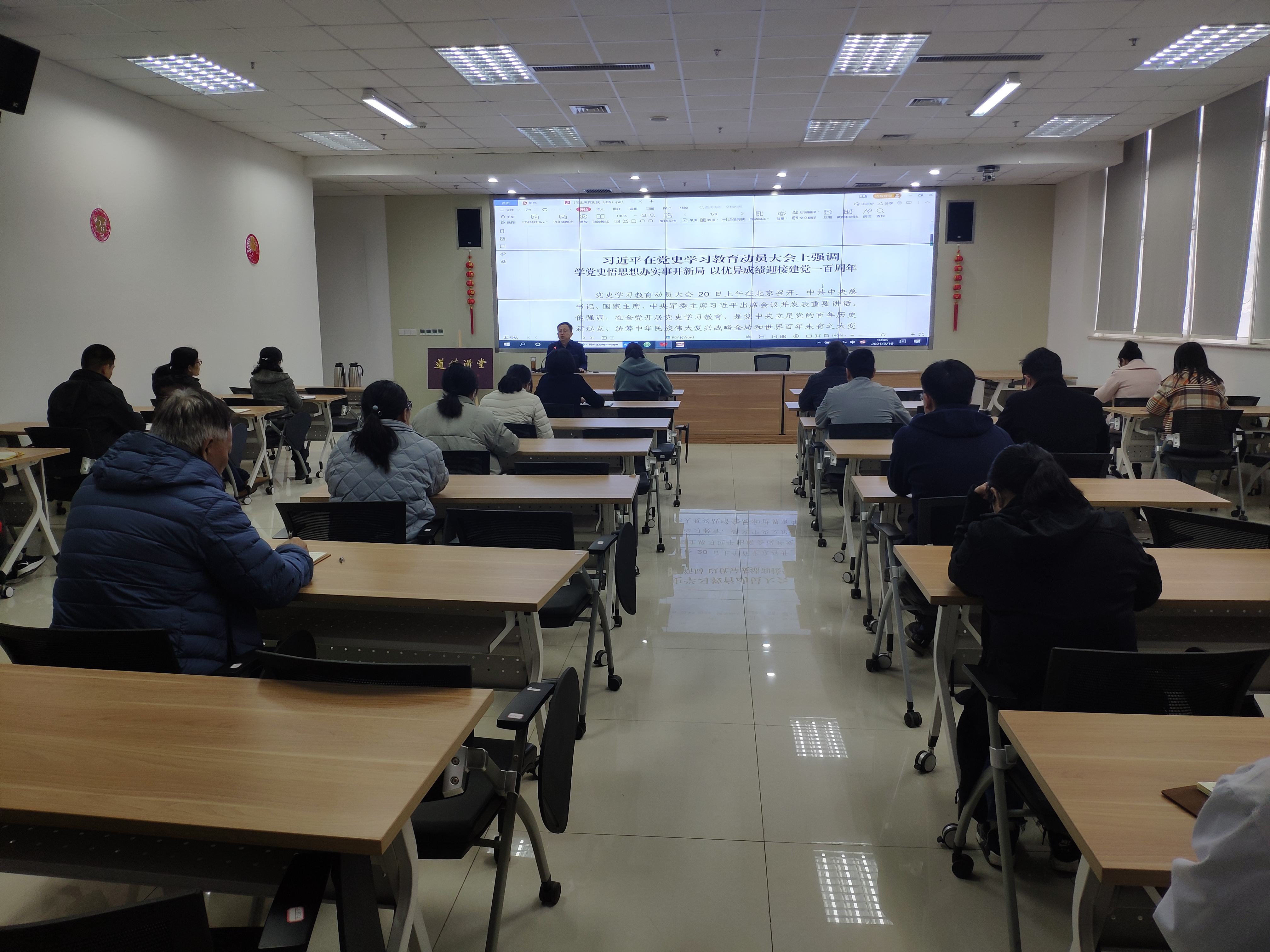 会上刘可春带领大家集中学习了《习近平总书记在党史学习教育动员大会上强调 学党史悟思想办实事开新局 以优异成绩迎接建党一百周年》《山东省党史学习教育动员大会在济召开》等学习资料。