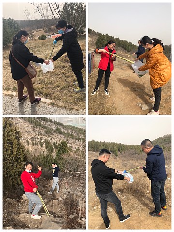 大家沿着山林小道,结伴而行,一边享受着大自然的秀丽风光,一边手持自制的竹夹子和单位参与研发的可降解垃圾袋,将山路上的塑料包装袋、烟蒂、纸屑等垃圾捡起来,一路上大家互相配合,笑声相伴,举手之劳使景区的环境更加美丽。
