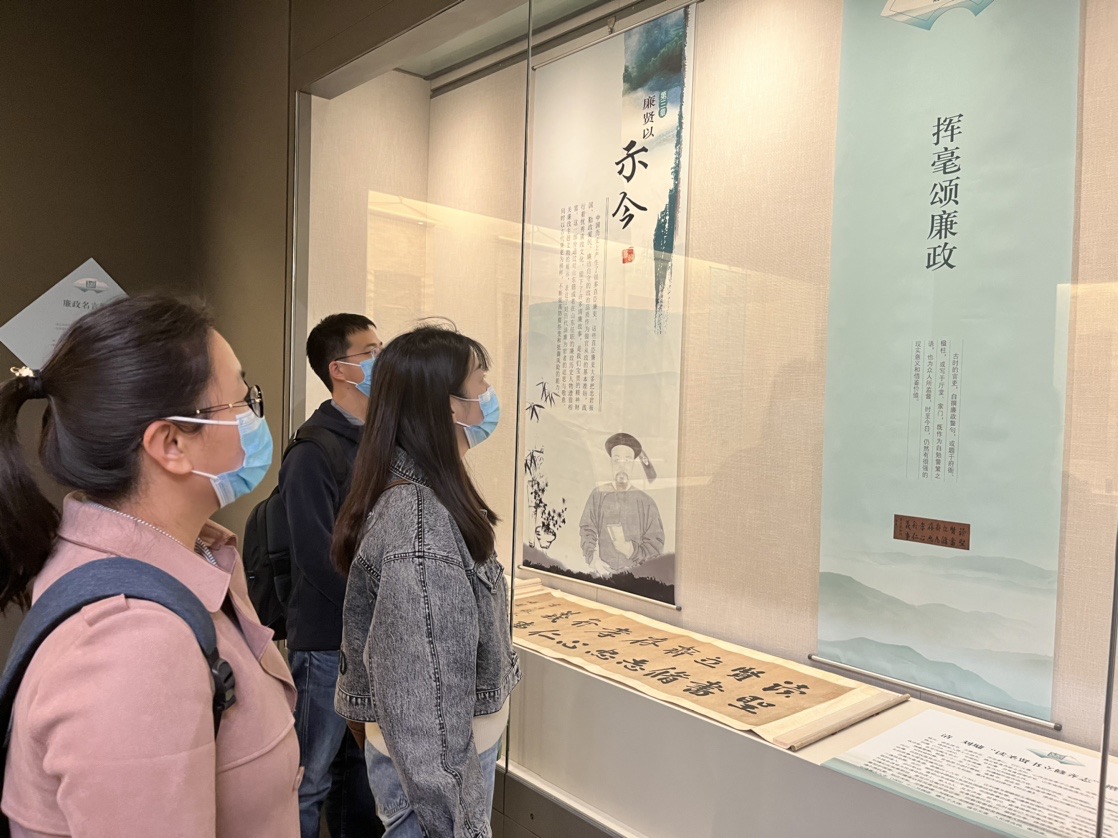 “泉城清风—济南市博物馆馆藏廉洁文化主题文物展”依托济南市博物馆馆藏文物资源,充分挖掘文物中蕴含的廉洁文化元素,共挑选蕴含廉洁寓意、歌颂清廉品德、纪念廉政名人的主题文物60多件,分为修身以养德、托物以言志、廉贤以示今三个部分进行展示,主要展品包  括中华民国拓清左宗棠书“负郭传家篆书十一言”对联拓片、清“俭可助廉勤可补拙”兽钮寿山长方印、清王铎竹石图轴等等。小组成员集体参观了所有展品,并分头深入学习了自己感触深刻的展品。