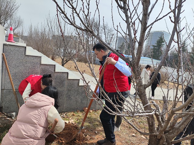 活动现场,师生们分组协作、互帮互助、干劲十足,挥锹铲土、扶苗填坑、培土夯基、提水浇灌,每个环节都一丝不苟。新栽的树苗错落有致,在春风中舒展枝条,大家通过自己辛勤地劳动为春日的校园增添了勃勃生机。