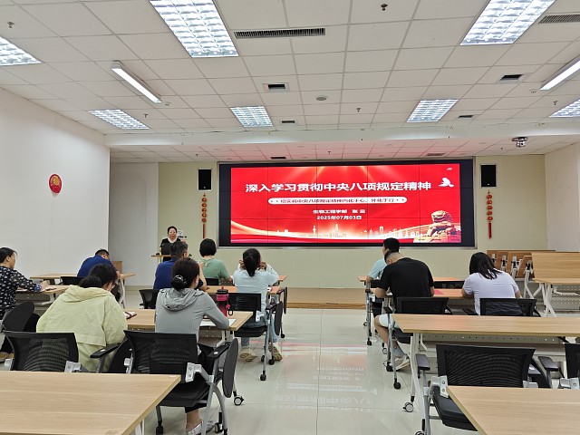 为深入学习贯彻习近平新时代中国特色社会主义思想和习近平总书记关于作风建设的重要指示批示精神,推动中央八项规定精神在科研一线落地见效,7月3日,分析生化党支部举办“深入贯彻中央八项规定精神学习教育”专题党课。学部纪委书记李慧玲,学部副主任张云到会指导并分享主题报告,支部书记蔡雷主持会议,支部全体党员参加学习并开展专题研讨。