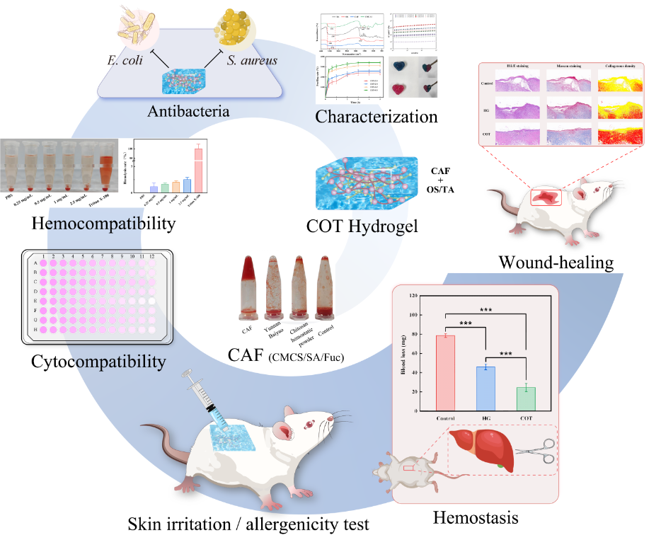 该成果为应对战场救护、急诊创伤、慢性难愈性创面等复杂临床场景提供了新的材料解决方案,也为基于海洋生物资源的高性能医用敷料研发提供了重要的科学依据与技术路径。